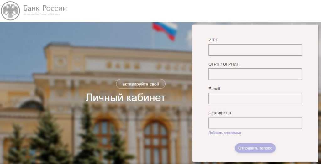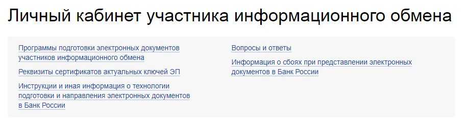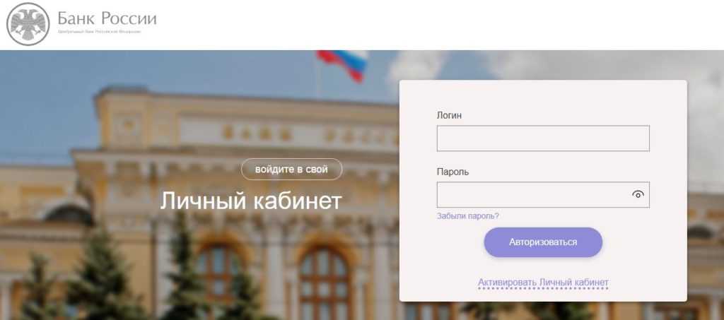 Личный кабинет представляет собой раздел на официальном сайте Банка России, доступ к которому осуществляется по защищенному соединению.