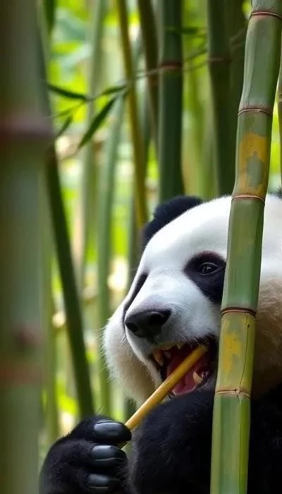 Адаптации к питанию бамбуком включают мощные челюсти и зубы для измельчения стеблей, а также специальный мускул, помогающий пережевывать пищу. Интересный факт: пищеварительная система панды не приспособлена для эффективного переваривания бамбука, поэтому она усваивает лишь около 17% питательных веществ. Панды вынуждены потреблять огромное количество бамбука, чтобы получить достаточно энергии для поддержания жизнедеятельности.