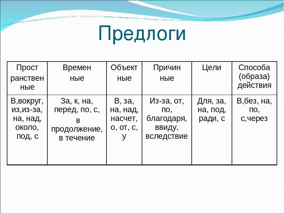 Непроизводные предлоги не образуются от других частей речи, среди них: за, между, к, над, от, для, без, через и др.