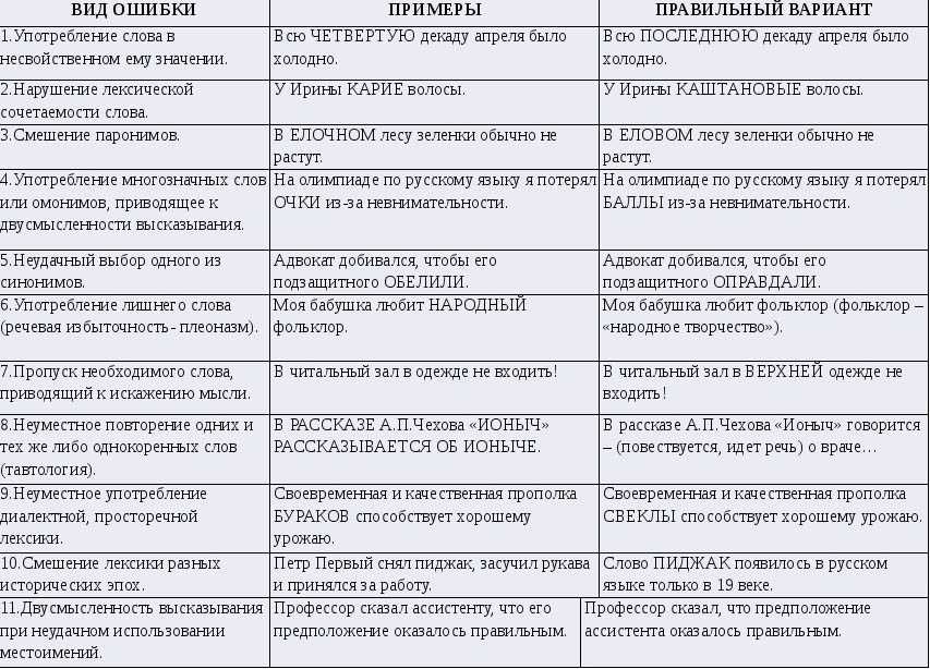Какие виды распространенных ошибок в разговорной речи встречаются: