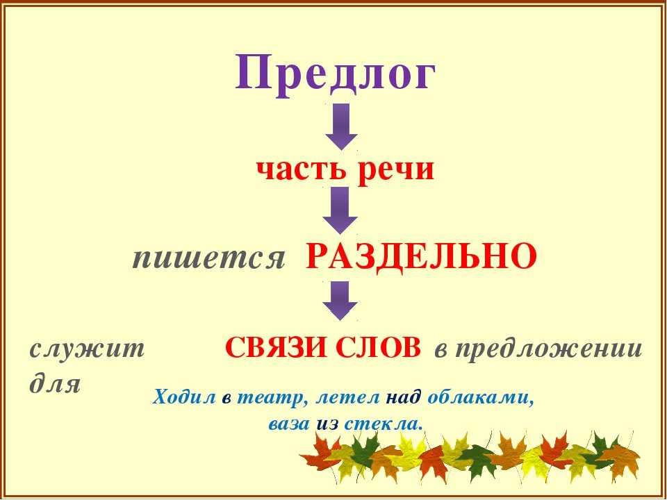 - Определение вида предлога — простой или составной, производный или непроизводный.