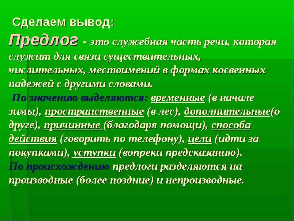 Производными предлогами называют те предлоги, которые возникли благодаря переходу из самостоятельных частей речи: