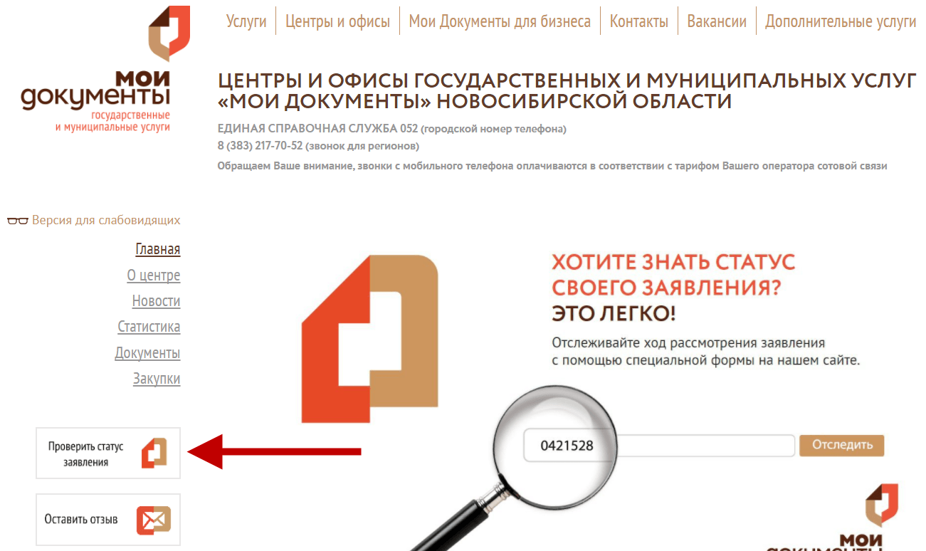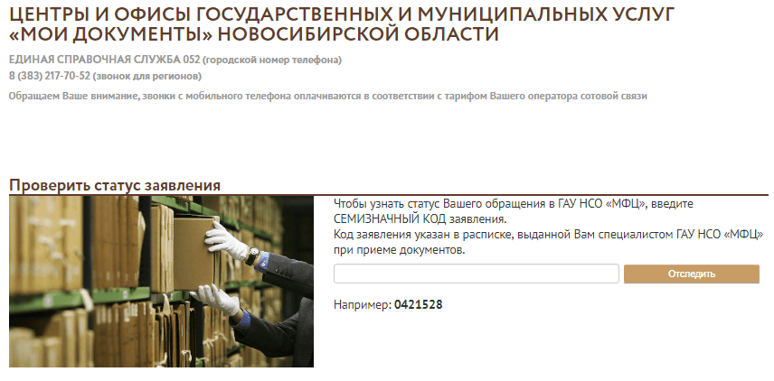 Узнать о стадии рассмотрения можно и на официальном сайте. Единого портала по всей стране у МФЦ не существует, поэтому в каждом случае домен сайта будет свой. Например: