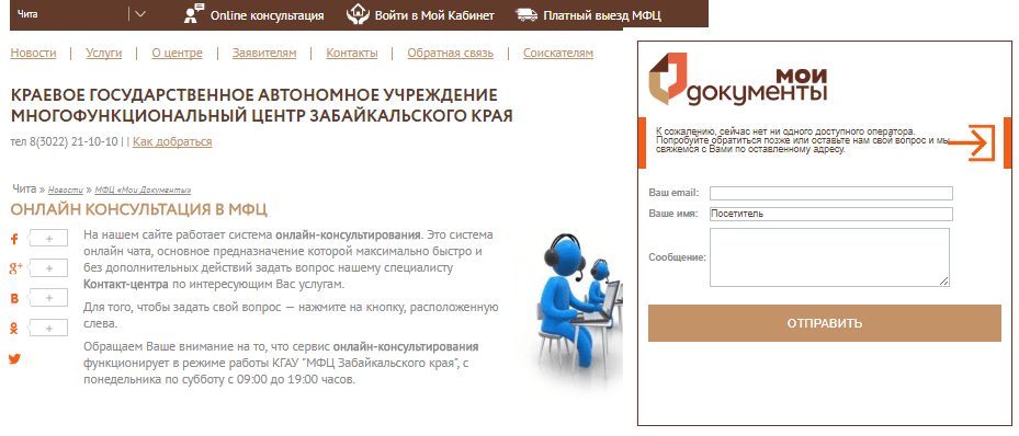 В некоторых случаях проверку можно осуществить и через чат поддержки. В режиме онлайн (в рабочие часы) реальный сотрудник МФЦ отвечает на вопросы клиентов. Вкладка с таким чатом располагается на главной странице сайта.