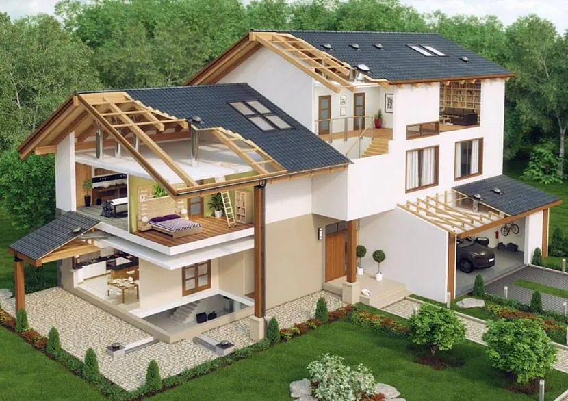 Под деревянным домом подразумевают постройки, выполненные из оцилиндрованного бревна, строганного бруса и профилированного клееного бруса. За счет различия технологии обработки свойства домов, построенных их этих материалов, могут сильно отличаться.