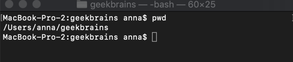 pwd — полный путь до папки, в которой находитесь сейчас: