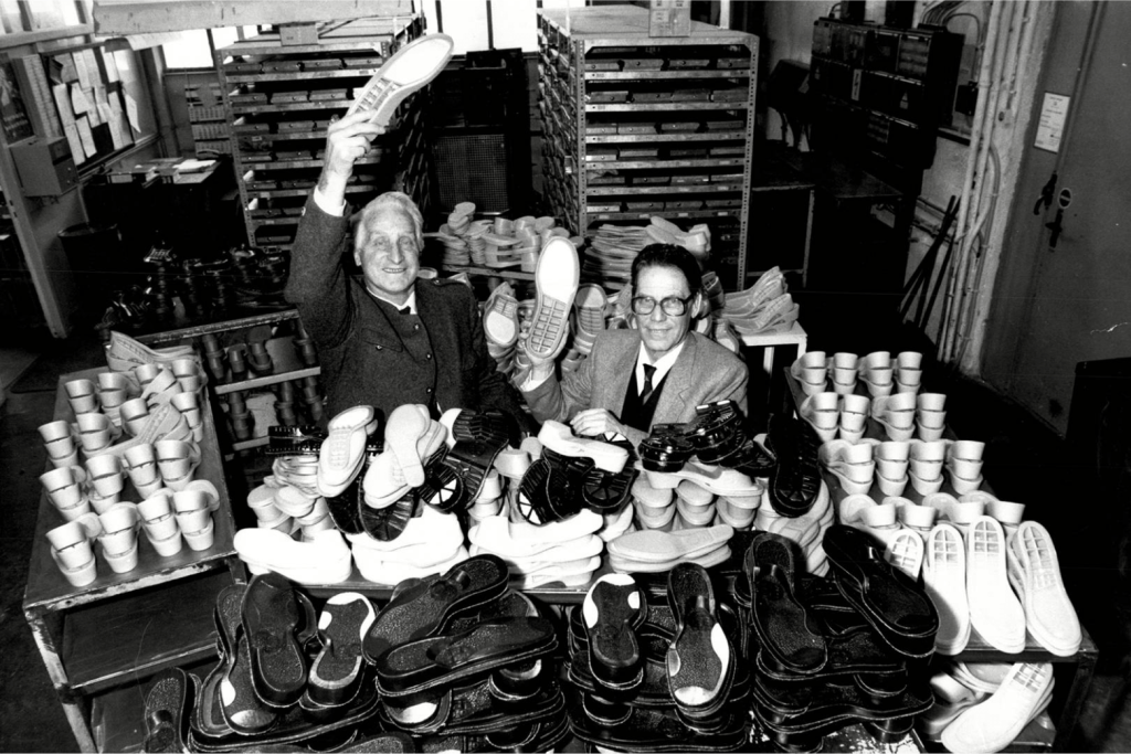 Они заключили партнерство, используя использованные военные запасы, чтобы начать производство своей уникальной обуви. В 1947 году они начали официальное производство и в течение десяти лет имели процветающий бизнес, продавая обувь в основном пожилым женщинам. В 1959 году они решили, что пришло время рекламировать свое революционное изобретение в зарубежных журналах.