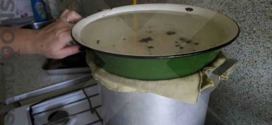 - Сверху все закрыть большим тазом, который должен свободно накрывать большую кастрюлю.