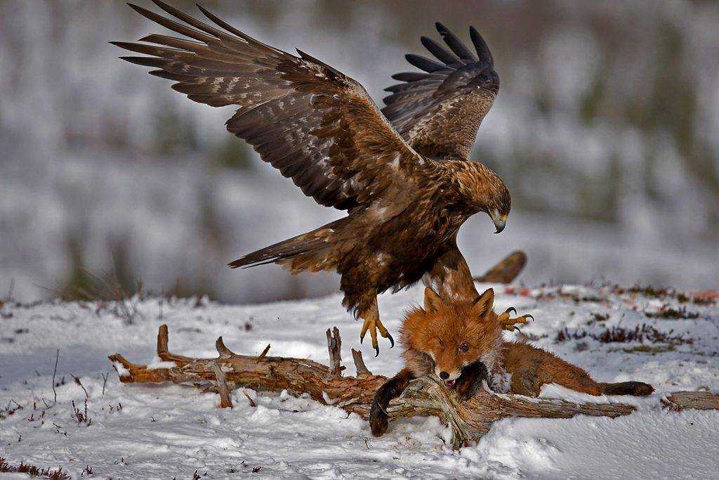 Белоголовый орлан, как известно, в основном ест рыбу, но беркуты охотятся на таких млекопитающих, как белки и кролики.