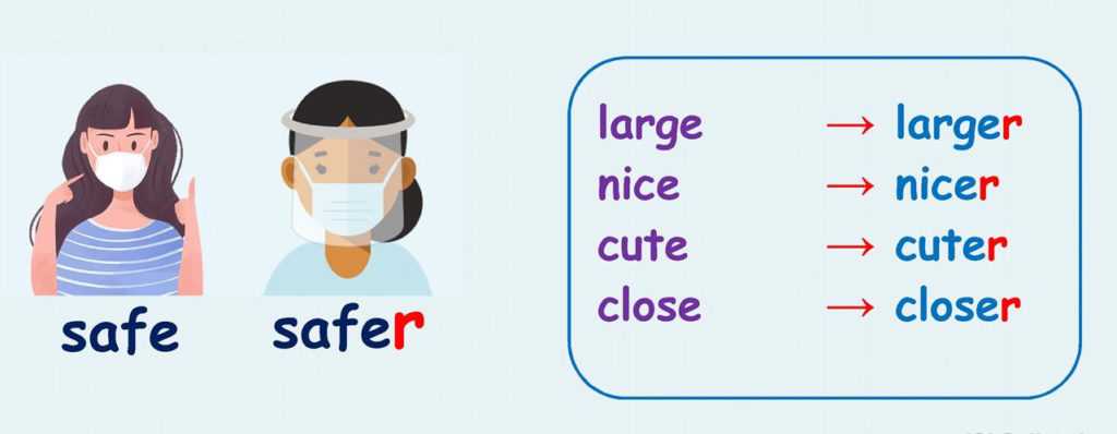 Если прилагательное состоит из одного слога и заканчивается на -Е, то также прибавляется суффикс -ER (при этом одна гласная Е редуцируется, т.е. убирается).