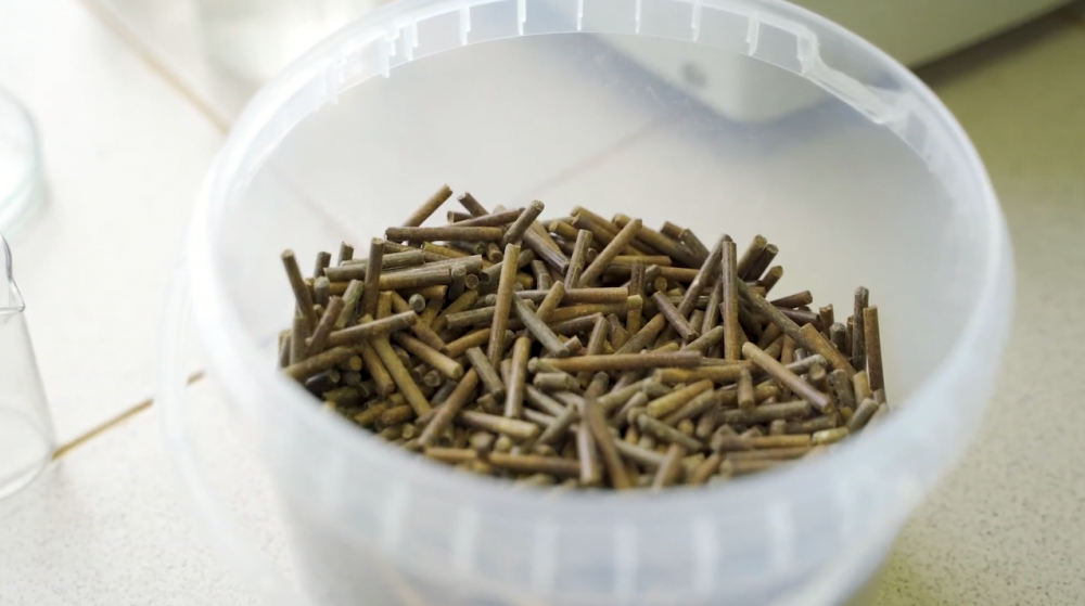 У компании свое производство в Кемеровской области с цехами и складом. Если сильно упростить, создание продукта состоит из замеса компонентов (основа — белок) и формирования гранул корма. Например, вот так выглядит корм для птиц.