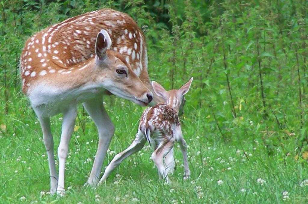 - Оленята появляются на свет с пятнами по всему телу, но со временем они исчезают и взрослая особь приобретает более однородный окрас.