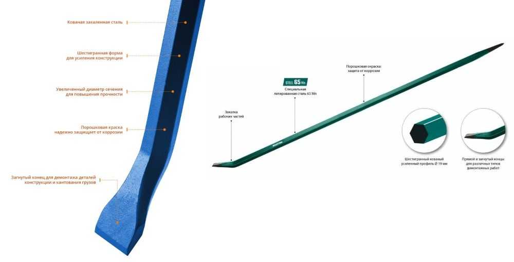- Наличие защиты: многие ломы имеют специальные защитные покрытия, которые предотвращают скольжение и повреждение поверхностей, на которых выполняются работы. Это обеспечивает безопасность и удобство при использовании инструмента.