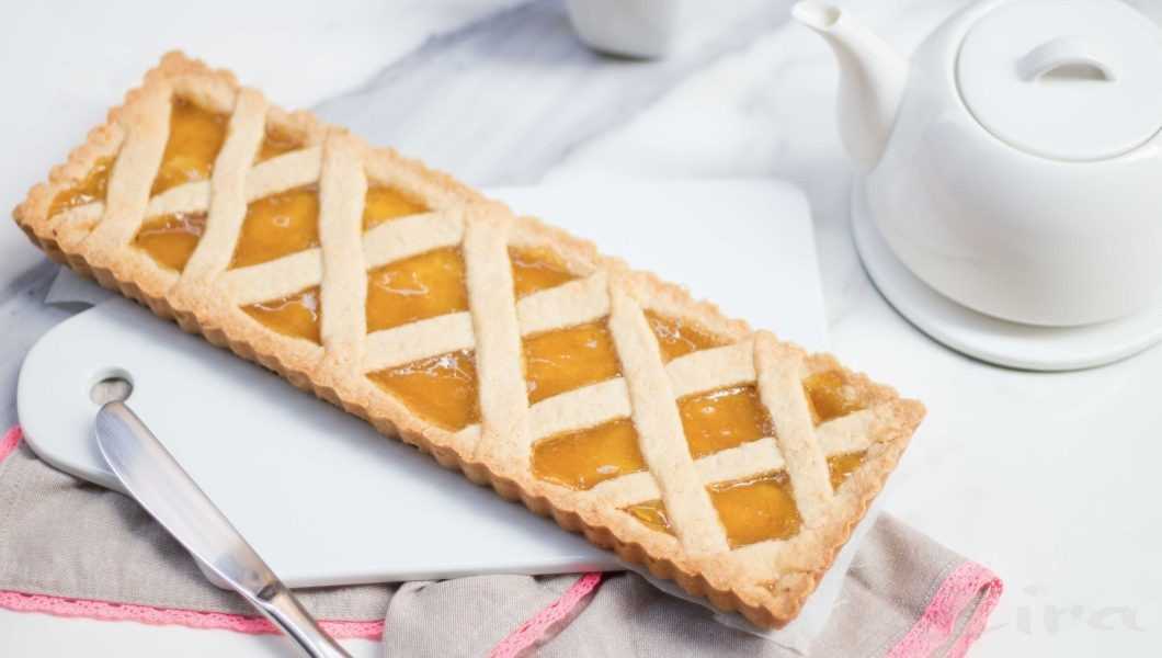 Итальянский пирог кростата пекут из песочного теста, а в начинку традиционно кладут фрукты, варенье или джем. Сверху пирог украшают решеткой из полосок теста.