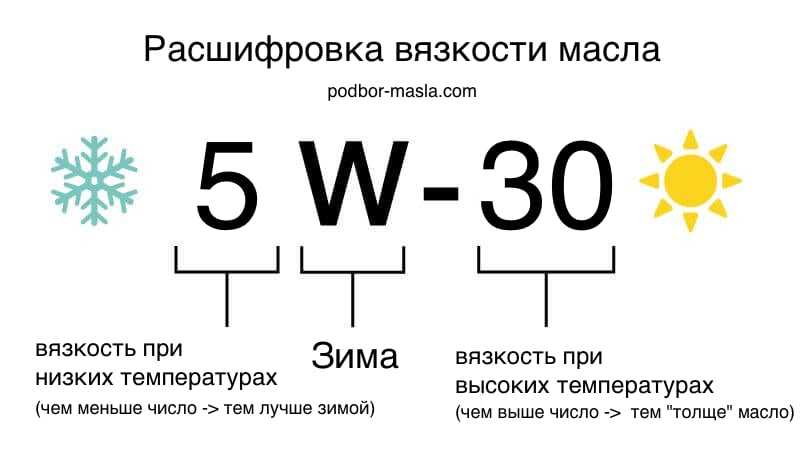 Буква «W» означает «зима» (от английского слова Winter). Возьмем для примера масло с вязкостью 5W30.