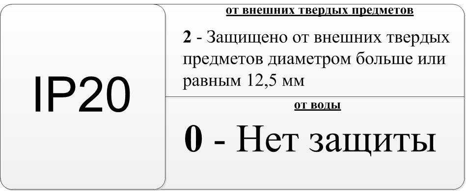 За буквами следует еще и цифровая расшифровка, к примеру, IP20 или IP62. Каждая цифра несет свою смысловую нагрузку: