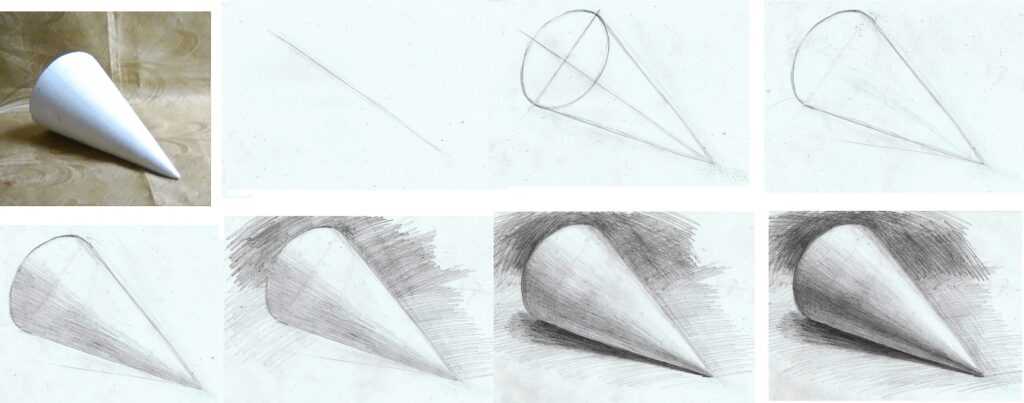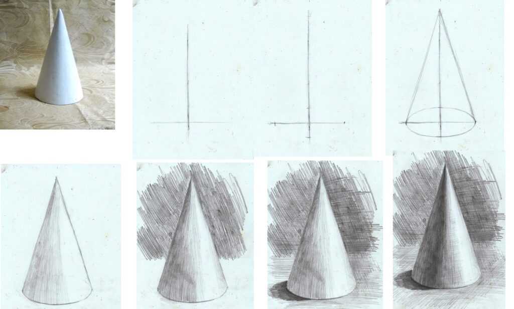 Кроме цилиндра есть такое тело вращения как конус, получается конус в результате вращения треугольника вокруг центральной оси. Построение конуса даже легче чем построение цилиндра, ведь у конуса нужно построить только один эллипс.
