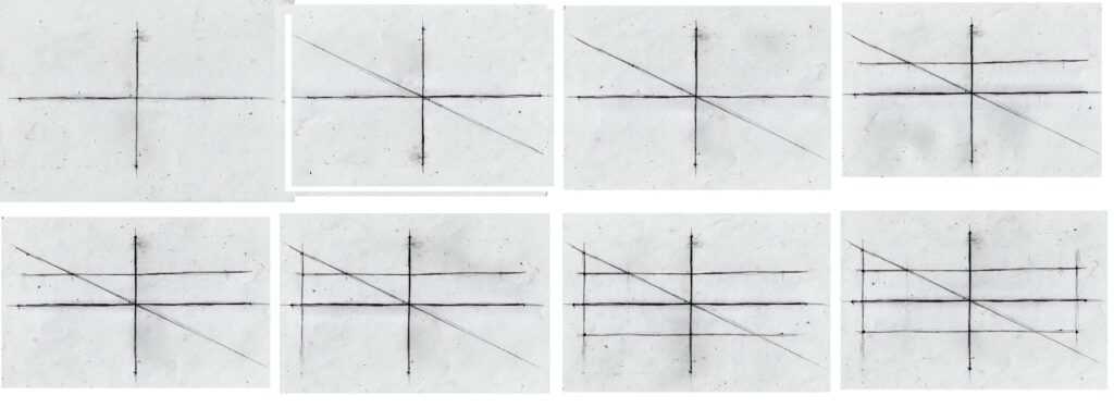 Мы провели длинную горизонтальную линию (ось) и перпендикулярно ей провели вертикальную линию (ось) равную половине горизонтальной. Малая ось пересекает большую ось строго посередине и, соответственно, большая ось пересекает малую тоже строго посередине. Концы осей и есть те четыре точки по которым художники строят эллипс. Но построить правильный эллипс по четырем точкам художнику не очень опытному сложновато, неплохо бы ещё несколько дополнительных точек иметь в наличии. Как найти дополнительные точки при построении эллипса?