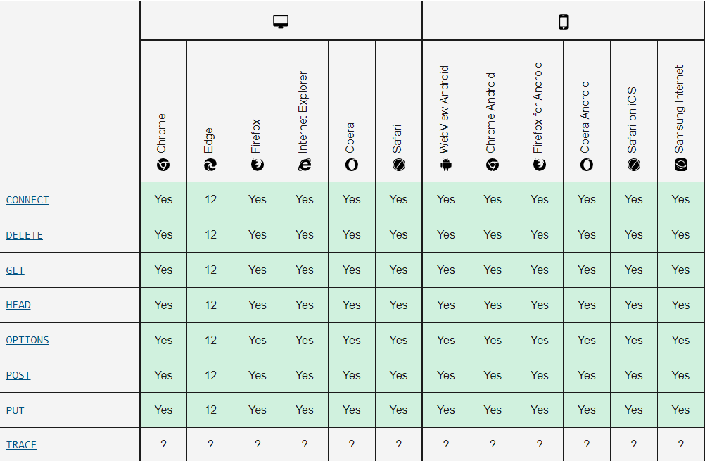 также может быть использован для проведения атаки . Эти бреши злоумышленники могут использовать, чтобы украсть cookies или другую конфиденциальную информацию — например, данные учетных записей, которые хранятся в заголовке Authorization при помощи межсайтового скриптинга.В большинстве приложений используются и . Это связано с тем, что HTML поддерживает только эти два метода.