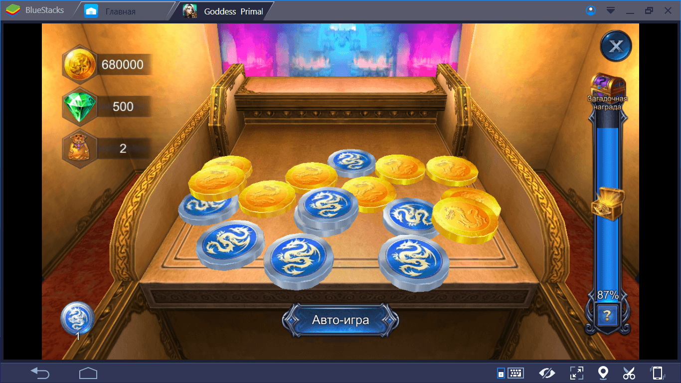 Суть в том, что нужно нанести золотому дракону альянса как можно больше урона, чтобы получить побольше драконьих монет и поднять дракона в уровне (чтобы в дальнейшем получать ещё больше таких монет). Чем больше у вас драконьих монет, тем больше вы их можете сложить на автомат с монетами и тем больше монет упадёт. Чем больше их упадёт, тем больше у вас будет золота — одна монета стоит аж 20000 золота и при везении можно выбить 500000-700000 золотых с одного захода. НЕ НАЖИМАЙТЕ НА “АВТО-ИГРА”! Монетки всегда нужно класть самостоятельно таким образом, чтобы максимально оттолкнуть существующую груду монет.