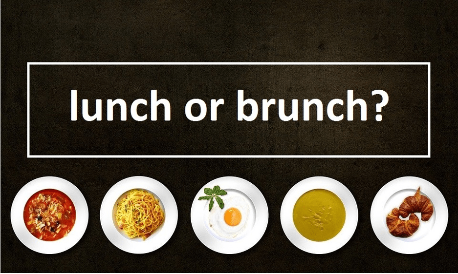 - brunch – второй, поздний завтрак (буквально: lunch + breakfast = brunch);